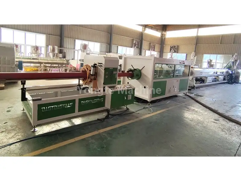 मशिन मल्टी-कॅटरपिलर ड्राइव्ह सिस्टीमसह सज्ज आहे, ज्यामध्ये उच्च-परिशुद्धता सर्वो मोटर्स आणि दुहेरी-स्टेज टॉर्क-ॲम्प्लीफायिंग गिअरबॉक्स समाविष्ट आहे. हे कॉन्फिगरेशन पीव्हीसी पाईप्सचे स्थिर एक्सट्रूझन सुनिश्चित करते, ज्यामुळे संपूर्ण उत्पादन प्रक्रियेत अचूक मितीय अचूकता राखली जाते.