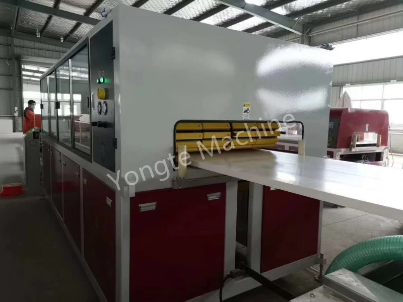 उपकरणे मॉडेल आणि कॉन्फिगरेशन: स्थापित केलेली लाइन SJSZ80/156 शंकूच्या आकाराच्या ट्विन-स्क्रू एक्सट्रूजन प्रणालीचा अवलंब करते, स्वयंचलित फीडिंग, व्हॅक्यूम कॅलिब्रेशन, स्थिर ट्रेशन, अचूक कटिंग, एज ट्रिमिंग आणि प्रगत नियंत्रण प्रणालीसह सुसज्ज आहे. ओळ कमाल करू शकते. 900mm रुंदीचे PVC डोअर पॅनेल ज्यामध्ये PVC राळ आणि CaCo3 फिलर म्हणून पोकळ विभाग आहेत.