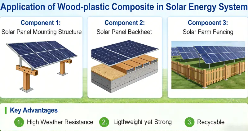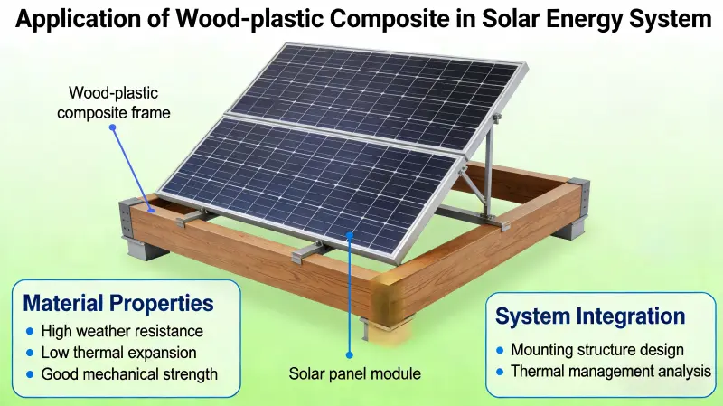 वुड-प्लास्टिक कंपोझिट (WPC) हे पर्यावरणपूरक, हवामान-प्रतिरोधक, हलके, कमी-देखभाल आणि सुलभ प्रक्रिया गुणधर्मांमुळे, फोटोव्होल्टेइक (PV) माउंट्स, फ्लोटिंग पॉवर स्टेशन्स, PV बिल्डिंग इंटिग्रेशन आणि केंद्रित सौर ऊर्जा (CSP) स्टोरेजसह सौर ऊर्जा प्रणालींमध्ये एक प्रमुख सामग्री म्हणून उदयास आले आहे. हे हळूहळू पारंपारिक धातू आणि लाकूड सामग्रीची जागा घेत आहे.